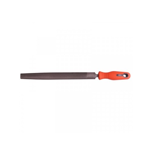 | Ostalo | Poluokrugla turpija sa ručkom marke Conmetall. Veoma kvalitetne izrade, sadrži ručku crvene boje, izrađenu od plastike. Ručka ima rupu za kačenje turpije na zid ili ekser za odlaganje. Dužina turpije 200mm. |