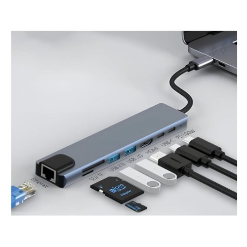 ELEMENTA 8u1 USB HUB sa HDMI, LAN, USBA, PD, TF/SD