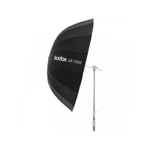 | Karakteristike | Godox UB-130W je kišobran bele unutrašnjosti i velikog prečnika od 130 cm. Idealan je kod portreta ili grupnih fotografija. Parabolicni oblik i bela unutrašnjost obezbeđuju veoma mekano svetlo koje će uspešno stići i na veće udaljenosti. Ovaj kišobran se može koristiti kao glavno ili kao fill svetlo. Montiranjem DPU-130T transparentnog difuzora možete pretvoriti ovaj kišobran u brolly softbox i dobiti jos mekše svetlo. |
