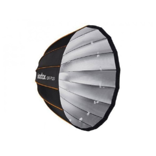 | Karakteristike | Godox Parabolic Softbox QR-P120 je parabolični 16-strani softboks dijagonale 120cm. Koristi isti grid kao Parabolic P120L i P120H. Sadrži 16 šipki od fiberglasa, spoljašnji difuzer, unutrašnji difuzer i futrolu. |