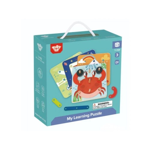 Karakteristike | Tooky toy puzzle -pogodi oblik je slagalica za učenje sastoji se od 24 komada. Vaše dete bira jednu od četiri kartice sa šablonom i postavlja odgovarajući drveni oblik na slagalicu. Devet drvenih štapića na tabli za slagalice olakšava vašem detetu da pronađe odgovarajuće mesto. Trenira prepoznavanje obrisa i oblika na razigran način. Pored toga, promoviše finu motoriku deteta, kao i koncentraciju. Vaše dete razigrano uči boje i oblike, podstiču se strpljenje i motoričke veštine. |