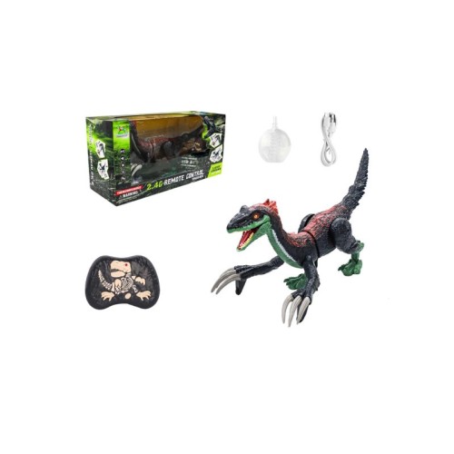 | Karakteristike | -U setu: 1x Velociraptor dinosaur robot, 1x daljinsko upravljanje 2,4G, USB priključak za punjenje, dodaci. -Napomena: svetlo i zvuk, hoda, pomera rep, riče. -Veličina dinosaura: cca. 18,5(v)x21,5×46 cm. -Materijal izrade: plastika. -Radi na AA baterije. -Dimenzije pak: 49×18,5×24,5 cm. -Težina pak: 1375 g. |