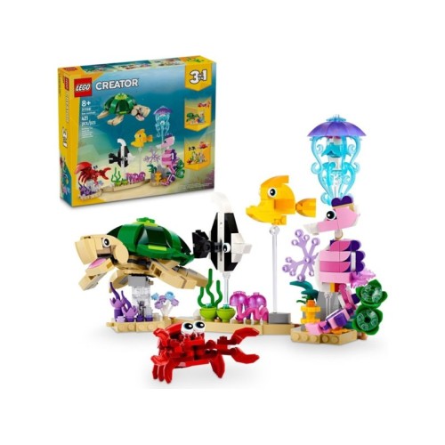 | Zaronite u neverovatnu LEGO® podvodnu avanturu uz LEGO® 31158 Morske životinje. Ovaj 3-u-1 set omogućava vam da kreirate različite modele i istražite tajne okeana. Glavne karakteristike seta: Tri modela u jednom – napravite različite morske životinje Detaljan dizajn inspirisan stvarnim morskim stvorenjima Kreativna i edukativna igra – savršeno za ljubitelje prirode i LEGO-a Prilika za beskrajno preoblikovanje i igru Stvorite svoj podvodni ekosistem i oživite magiju okeana uz LEGO Morske životinje |