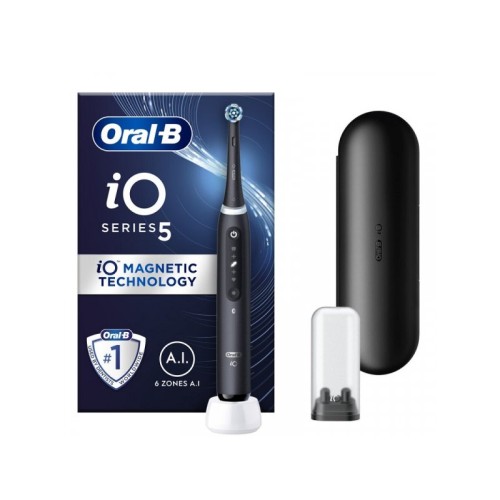 | Karakteristike | Tip: Električna četkica za zube Karakteristike: Povezuje se sa besplatnom aplikacijom Oral-B za praćenje i vođenje četkanja u realnom vremenu kroz 6 zona za četkanje. 5 načina rada: dnevno čišćenje, intenzivno čišćenje, izbeljivanje, osetljivo, super osetljivo. Veštačka inteligencija prepoznaje stil četkanja i vodi vas prilikom pranja zuba, tako da ne propustite nijednu površinu. Pametni senzor pritiska pokazuje crvenom, belom i zelenom bojom da li četkate previše snažno, prelagano ili sa odgovarajućom količinom pritiska. Preporučeno menjanje Oral-B iO glave četkice za zube svaka 3 meseca. Boja: Crna Obim isporuke: 1 x Drška 1 x Glava četkice 1 x Futrola |