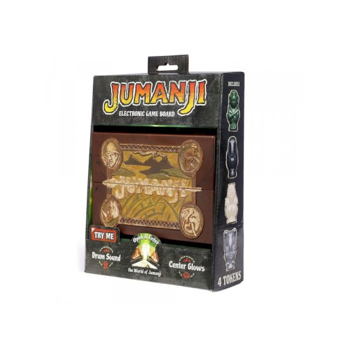 Karakteristike Minijaturna replika ploče iz kultne filmske serije Jumanji. Kada se otvori, centralni logo svetli i igra se tema bubnja. Dolazi sa minijaturnim kockicama i životinjskim totemima. Imajte na umu da je ovo mini replika - ne sadrži igru.