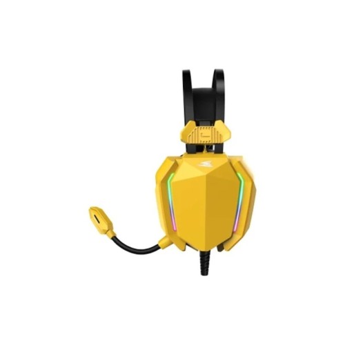 | Karakteristike | Veličina zvučnika: 50 mm (veliki drajveri za jači zvuk) Frekvencijski raspon: 20 Hz – 20 kHz (standard za pun spektar zvuka) Osetljivost: ~118 dB ± 3 dB (glasne i detaljne) Impedansa: 32 Ω ± 15 % Mikrofon Usmeren mikrofon (za bolju komunikaciju u igrama) Osetljivost mikrofona: ~–42 dB ± 2 dB Impedansa mikrofona: ~2200 Ω Dizajn i udobnost Dužina kabla: 2,15 m PVC Kontrola jačine: Na kablu/slusalicama Materijal: ABS plastika Težina: oko 310 g Priključci: 2× 3,5 mm (za zvuk i mikrofon) USB (za napajanje LED efekta) Kompatibilnost: PC (računari) Dodatno LED osvetljenje: RGB Boja: Žuta |